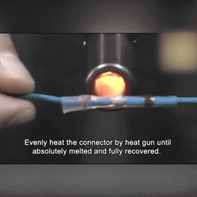 - Evenly heat the connector by heat gun until absolutely melted and fully recovered