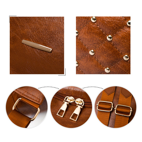 [Material]: Top zipper closure with long handles on the shoulder straps. Shoulder bag with adjustable metal buckle strap that can be worn as a backpack, messenger bag, shoulder bag, sling bag or crescent satchel. The shoulder straps are very comfortable and adjustable in length, one is made of leather and the other is a durable nylon strap, which is stronger and lasts a long time.